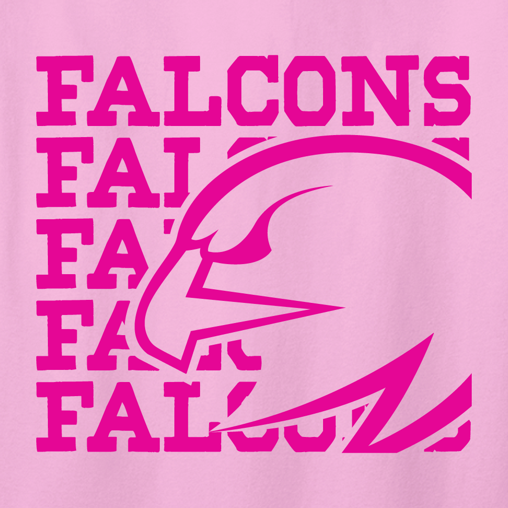 This soft, 100% cotton pink t-shirt features a bold, screen-printed Falcon mascot design repeated for maximum impact. Perfect for Pink Out events or everyday wear, it’s a stylish way to stand with the community and show your support.