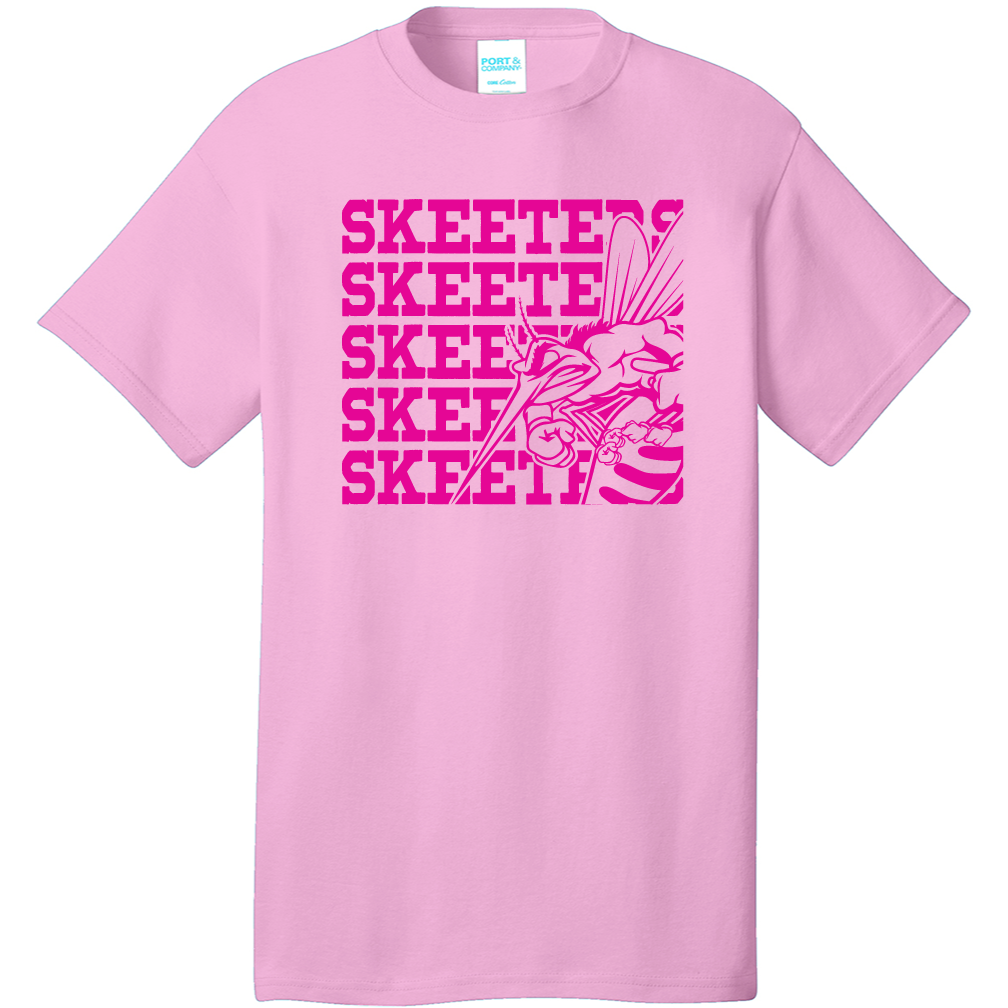 This soft, 100% cotton pink t-shirt features a bold, screen-printed Skeeter mascot design repeated for maximum impact. Perfect for Breast Cancer Awareness events or everyday wear, it’s a stylish way to stand with the community and show your support.