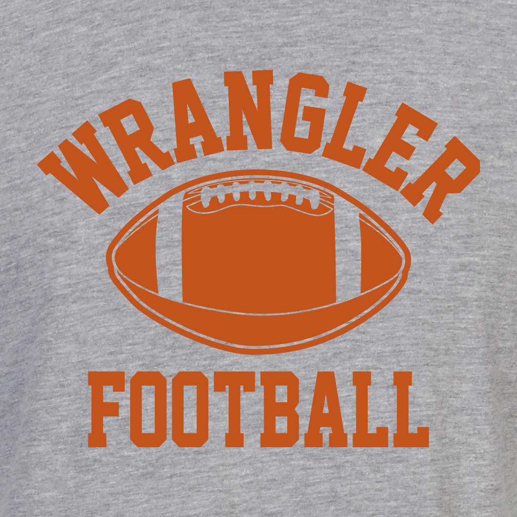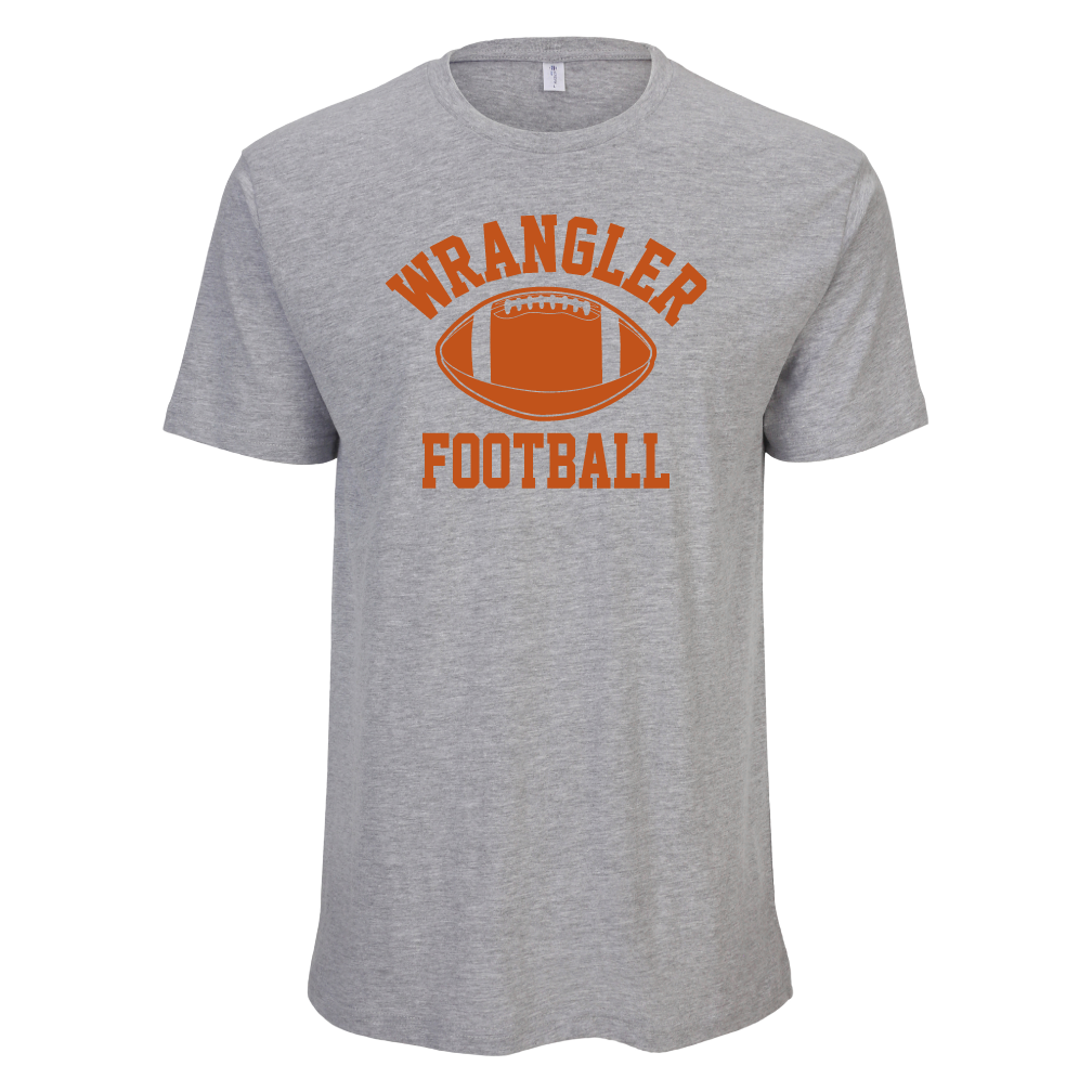 Show your team pride with this classic Wrangler Football T-Shirt! Made from 100% soft cotton, this lightweight and breathable tee offers all-day comfort whether you’re in the stands, on the field, or out and about. Featuring a bold, screen-printed WRANGLER FOOTBALL design with a football graphic, this shirt is perfect for fans and players alike.